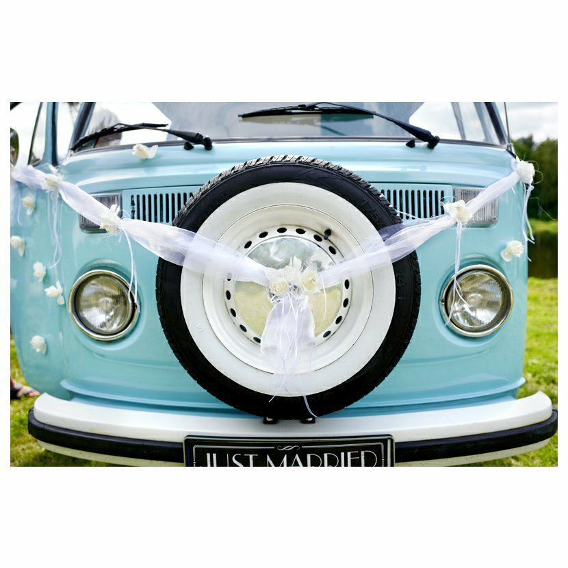 Girlanda na kapotu auta180 cm bílá, organzové růže, 2 kusy